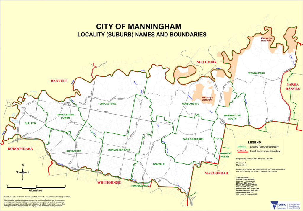 Manningham sits in Melbourne’s north-east, running from the Doncaster ridgeline down to the Yarra River and out through undulating valleys towards Warrandyte’s semi-rural fringe. It is one of the greener LGAs in the metropolitan area, with more than 300 parks and reserves packed into 113 square kilometres. The catch: no train lines, no trams. Manningham travels by car, which gives it a quieter, more self-contained character than its neighbours.