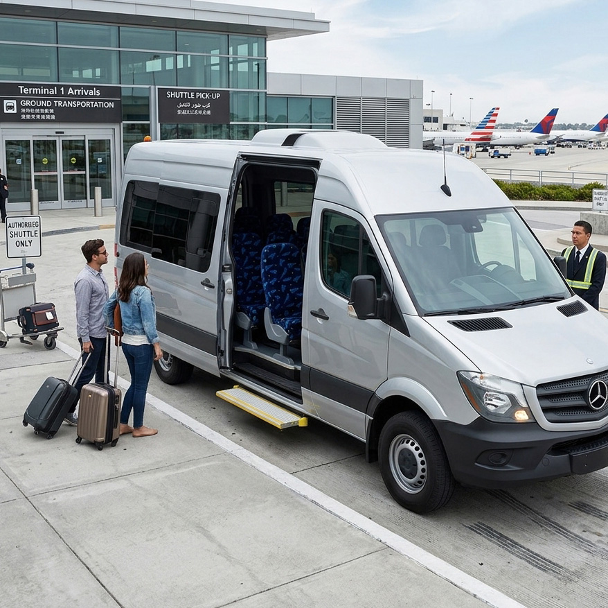 • Shared shuttle: Con-X-ion runs shared vans at a lower per-head rate.