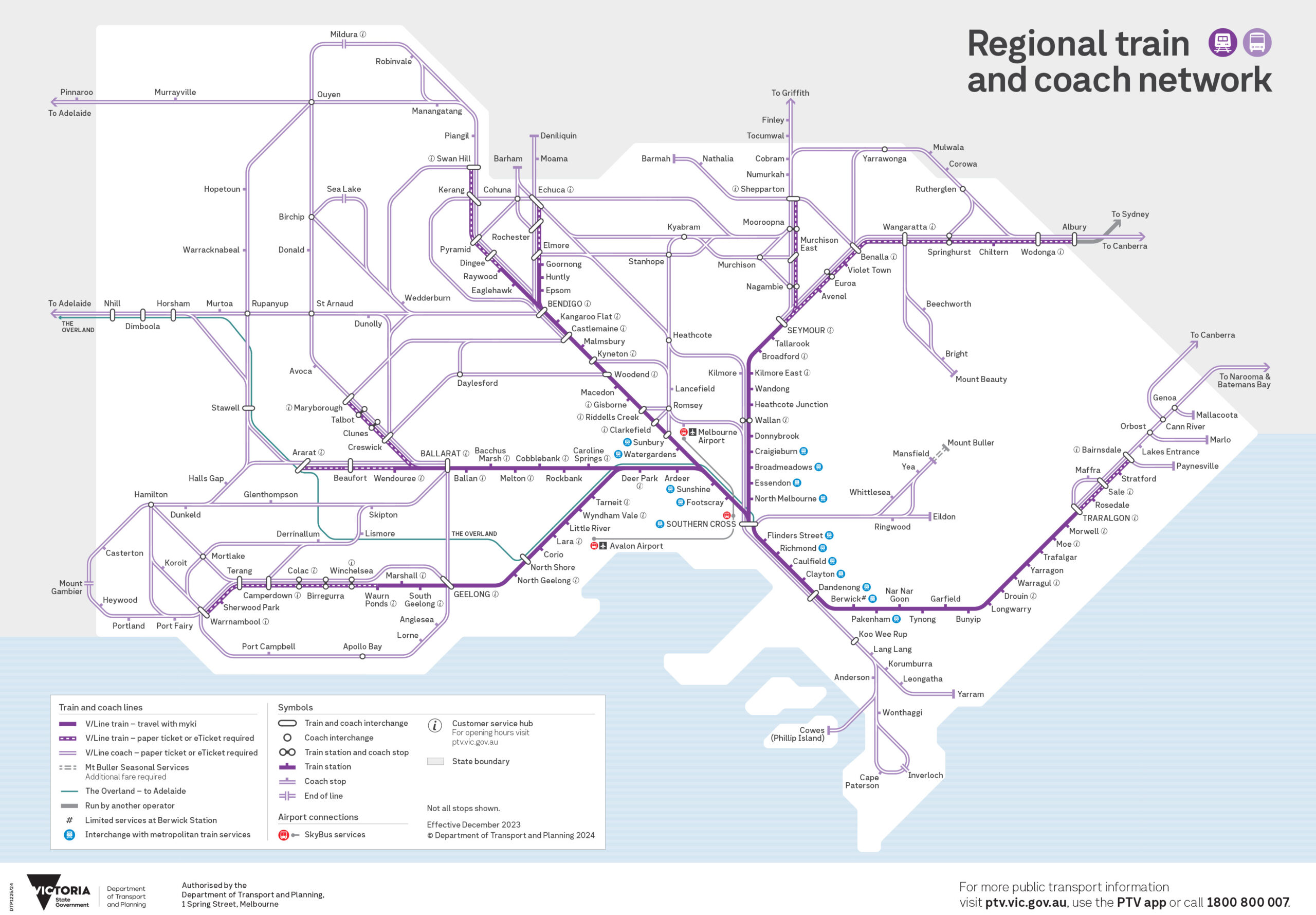 V/Line Victorian Regional Train and Bus Route Map